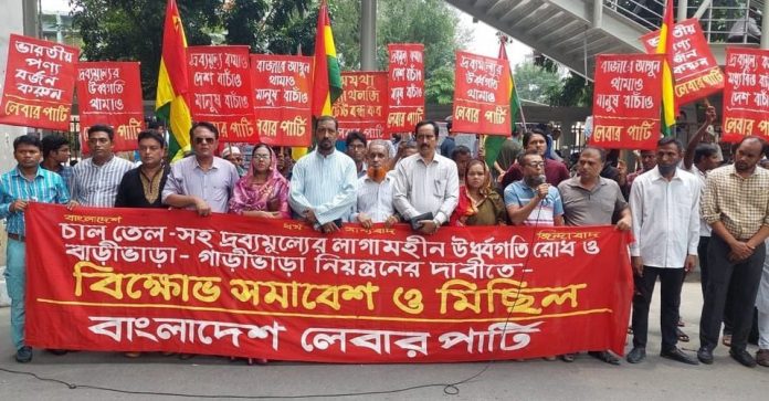 মহানগর লেবার পার্টির সভাপতি এস এম ইউসুফ আলীর সভাপতিত্বে এবং সাধারণ সম্পাদক মো. জাহিদ হোসেনের পরিচালনায় বিক্ষোভ সমাবেশে লেবার পার্টির ভাইস চেয়ারম্যান অ্যাডভোকেট আমিনুল ইসলাম, ভারপ্রাপ্ত মহাসচিব খন্দকার মিরাজুল ইসলাম, যুগ্ম মহাসচিব আবদুর রহমান খোকন, হেলাল উদ্দিন চৌধুরী, মুফতি তরিকুল ইসলাম সাদী, মোহাম্মদ রুম্মান সিকদার, অর্থ সম্পাদক রাসেল সিকদার লিটন, মহিলা সম্পাদিকা নাসিমা নাজনিন সরকার, প্রচার সম্পাদক মনির হোসেন, ছাত্রমিশন সভাপতি সৈয়দ মো. মিলন ও প্রচার সম্পাদক হাফিজুর রহমান প্রমুখ উপস্থিত ছিলেন।