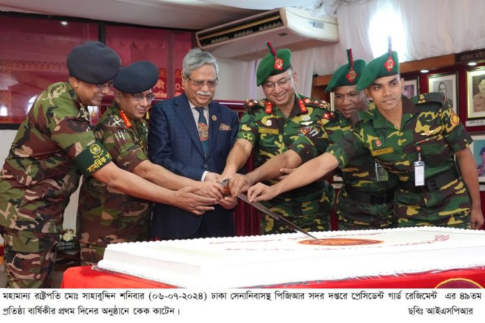 যথাযথ উৎসাহ ও উদ্দীপনার মধ্য দিয়ে প্রেসিডেন্ট গার্ড রেজিমেন্ট (পিজিআর) এর ৪৯তম প্রতিষ্ঠা বার্ষিকী (প্রথম দিন) পালিত হয়। শনিবার (০৬ জুলাই ২০২৪) ৪৯তম প্রতিষ্ঠা বার্ষিকী উপলক্ষ্যে রাষ্ট্রপতি মোঃ সাহাবুদ্দিন সকালে পিজিআর সদর দপ্তরে পোঁছালে তাঁকে অভ্যর্থনা জানান সেনাবাহিনী প্রধান জেনারেল ওয়াকার-উজ-জামান, ওএসপি, এসজিপি, পিএসসি, মহামান্য রাষ্ট্রপতির সামরিক সচিব এবং পিজিআর কমান্ডার। ১৯৭৫ সালের ০৫ জুলাই স্বাধীন বাংলাদেশের রূপকার সর্বকালের সর্বশ্রেষ্ঠ বাঙালি জাতির পিতা বঙ্গবন্ধু শেখ মুজিবুর রহমানের নির্দেশনায় গঠিত হয় প্রেসিডেন্ট গার্ড রেজিমেন্ট।