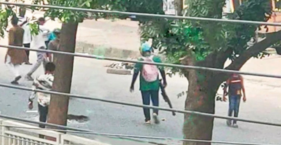 ১৫ জুলাই ঢাকা বিশ্ববিদ্যালয় এলাকায় পিস্তল হাতে এক যুবককে আন্দোলনকারীদের ওপর গুলি করতে দেখা যায়। ঢাবির শহীদুল্লাহ হলের সামনে ওই ঘটনা ঘটে। ওই অস্ত্রধারীর নাম হাসান মোল্লা। তিনি ঢাকা মহানগর উত্তর ছাত্রলীগের সাবেক সহসভাপতি এবং ঢাকা কলেজের প্রাক্তন শিক্ষার্থী। এ ছাড়া ঢাকার আরও অন্তত তিনজন সাবেক কাউন্সিলর ছাত্র-জনতার ওপর গুলি ছোড়েন এবং অস্ত্রের মহড়া দেন।