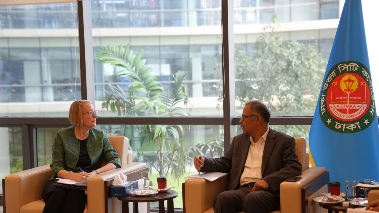 ঢাকা উত্তর সিটি কর্পোরেশনের (ডিএনসিসি) প্রশাসক মো. মাহমুদুল হাসানের সঙ্গে সৌজন্য সাক্ষাৎ ও বৈঠক করেছেন ঢাকায় নিযুক্ত ব্রিটিশ হাইকমিশনার সারাহ ক্যাথরিন কুক। বৈঠকে ডিএনসিসির প্রশাসক বলেন, প্রাথমিকভাবে গুলশানে পরীক্ষামূলক কার্যক্রম গ্রহণের ফলাফলের ভিত্তিতে পুরো ঢাকা শহরের পরিবহন ব্যবস্থার মহাপরিকল্পনা প্রণয়ন করা হবে। আজ (সোমবার) রাজধানীর গুলশানে নগর ভবনে ডিএনসিসির প্রশাসকের কার্যালয়ে এই বৈঠক অনুষ্ঠিত হয়।