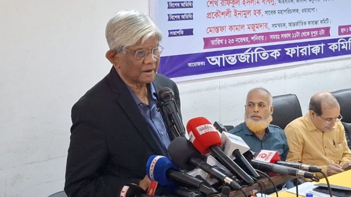 শনিবার (২৩ নভেম্বর) জাতীয় প্রেস ক্লাবের আবদুস সালাম হলে আন্তর্জাতিক ফারাক্কা কমিটি, বাংলাদেশের উদ্যোগে আয়োজিত ‘উজানে যৌথ নদীর পানি প্রত্যাহার: বাংলাদেশের অর্থনৈতিক বিপর্যয়’ শীর্ষক সেমিনারে প্রধান অতিথির বক্তব্যে তিনি এসব কথা বলেন।