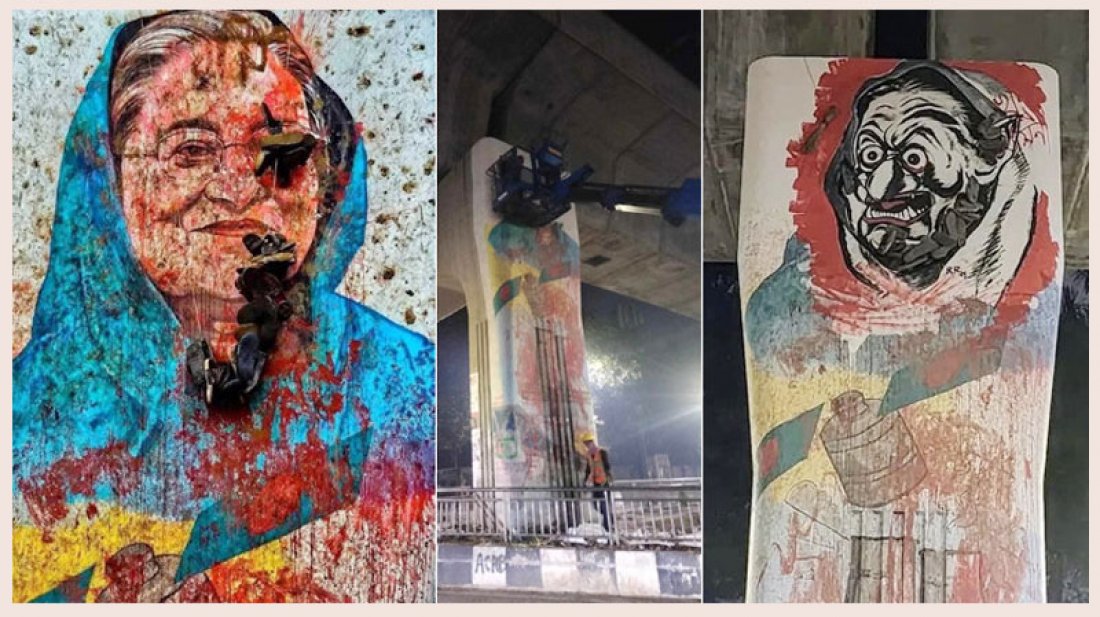 বিবৃতিতে দুঃখ প্রকাশ করে বলা হয়, গভীর রাতে ঢাকা বিশ্ববিদ্যালয়ের রাজু ভাস্কর্যের পেছনে মেট্রোরেলের দুটি পিলারে থাকা শেখ মুজিব এবং শেখ হাসিনার ঘৃণাসূচক গ্রাফিতি মুছে ফেলার চেষ্টা করা হয়। জুলাই আন্দোলনে এই দুটি গ্রাফিতি বিপ্লব, প্রতিরোধ এবং ফ্যাসিবাদ ধ্বংসের প্রতিনিধিত্ব করে। এই স্মৃতিকে তাজা রাখা এবং প্রজন্মান্তরে ছড়িয়ে দেওয়া আমাদের দায়িত্ব।