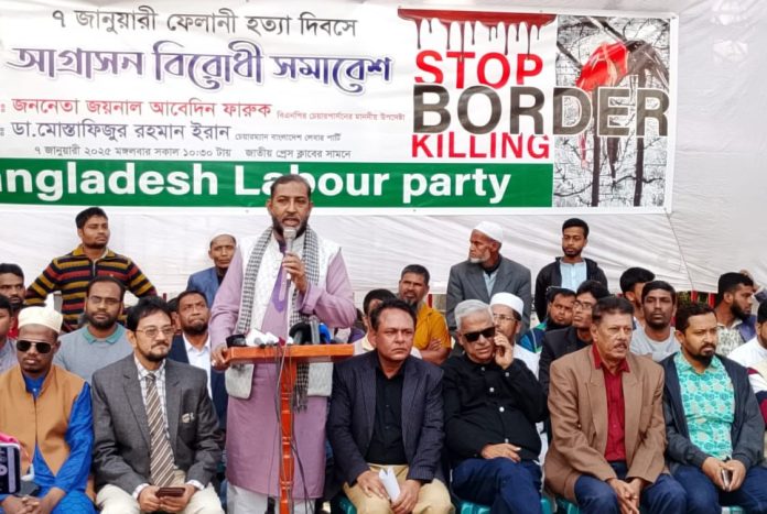৭ জানুয়ারি জাতীয় প্রেসক্লাবের সামনে ফেলানী হত্যা দিবসে সীমান্ত আগ্রাসন বন্ধের দাবিতে বাংলাদেশ লেবার পার্টি আয়োজিত এক সমাবেশে তিনি একথা বলেন।