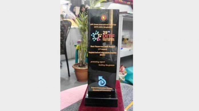 ২৯তম ঢাকা আন্তর্জাতিক বাণিজ্য মেলার সমাপনী অনুষ্ঠানে সংরক্ষিত স্টল ক্যাটাগরিতে প্রথম পুরস্কার অর্জন করেছে বিসিক, শিল্প মন্ত্রণালয়। শনিবার (০২ ফেব্রুয়ারি) এক সংবাদ বিজ্ঞপ্তিতে এ তথ্য জানিয়েছে বিসিক।