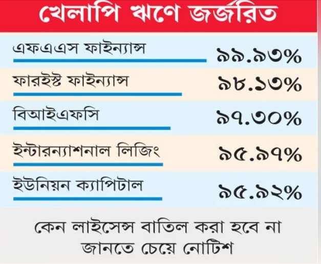 বাংলাদেশ ব্যাংক ফিন্যান্স কোম্পানি আইনের ৭(১) ধারায় মোট ৯টি কারণে আর্থিক প্রতিষ্ঠানের লাইসেন্স বাতিল করতে পারে। এর মধ্যে কেন্দ্রীয় ব্যাংকের চিঠিতে উল্লেখিত ‘ঘ’ উপধারা অনুযায়ী আমানতকারীর স্বার্থ পরিপন্থি ব্যবসা পরিচালনা এবং ‘ঙ’ আমানতকারীর দায় পরিশোধে সম্পদের অপর্যাপ্ততায় লাইসেন্স বাতিল করা যায়। আর ‘চ’ উপধারায় মূলধন সংরক্ষণ করতে না পারলে লাইসেন্স বাতিল করা যাবে। এ ছাড়া লাইসেন্স বাতিলের আগে ৭(২) ধারায় ১৫ দিনের সময় দিয়ে নোটিশ দেওয়ার বিধান রয়েছে। সে অনুযায়ী নোটিশ দিয়েছে বাংলাদেশ ব্যাংক।
