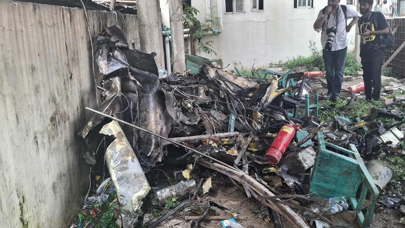 প্রত্যক্ষদর্শীরা জানান, উত্তরার মাইলস্টোন স্কুল অ্যান্ড কলেজ ক্যাম্পাসে বিমানটি বিধ্বস্ত হয়েছে। কলেজের জনসংযোগ কর্মকর্তা শাহ বুলবুল বলেন, ‘বিদ্যালয় শাখার ক্যান্টিন লাগোয়া একটি ক্লাসরুম বিমান বিধ্বস্তে ক্ষতিগ্রস্ত হয়েছে। নিরাপত্তা বাহিনী পুরো এলাকা ঘিরে রেখেছে। কলেজ কর্তৃপক্ষকেও ঘটনাস্থলে যেতে দেওয়া হচ্ছে না।’
