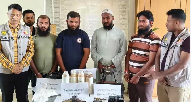 অভিযান চলাকালে তাদের কাছ থেকে একটি বিদেশি পিস্তল, একটি ওয়ান শ্যুটারগান, ১৪ রাউন্ড গুলি, তিনটি গুলির খোসা, একাধিক স্মার্টফোন, মেটাল ডিটেক্টর, ড্রোন ও ড্রোন সংশ্লিষ্ট সরঞ্জামসহ বিভিন্ন বই ও লিফলেট উদ্ধার করা হয়।